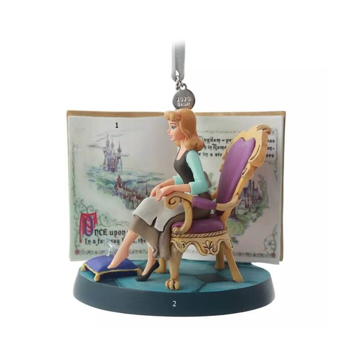 Make the holiday dream that you wish come true as our lovely Cinderella ornament recreates the fateful moment when the slipper fits. Providing a backdrop for the sculpted figure is a miniature reproduction of the storybook from the film’s opening sequence.